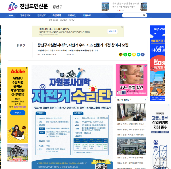 [전남도민신문]광산구자원봉사대학, 자전거 수리 기초 전문가 과정 참여자 모집