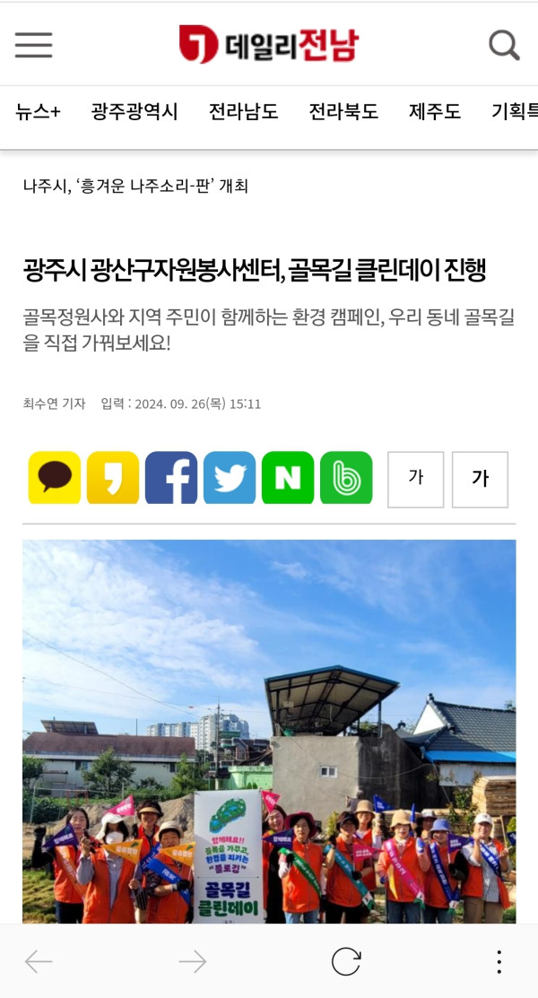 [데일리전남] 광산구자원봉사센터 ‘골목길 클린데이’ 진행