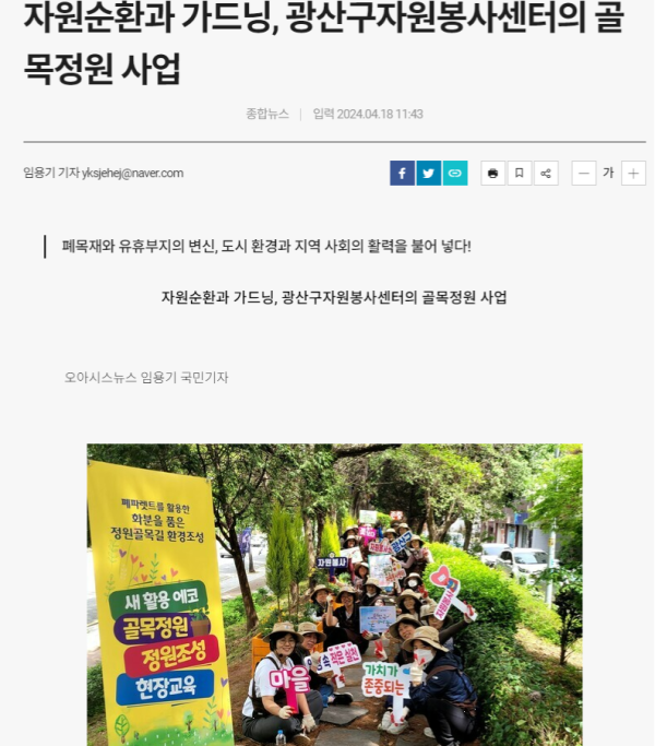 [오아시스뉴스] 자원순환과 가드닝, 광산구자원봉사센터의 골목정원 사업