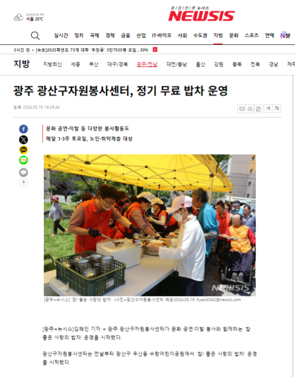 [뉴시스] 광주 광산구자원봉사센터, 정기 무료 밥차 운영