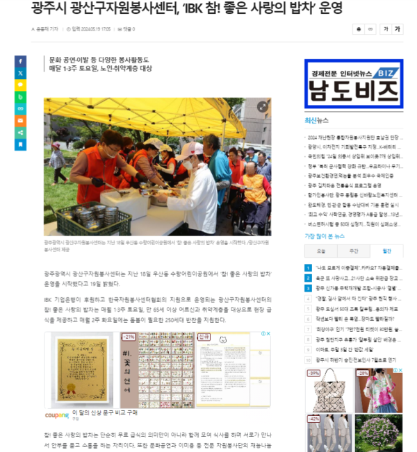 [남도일보] 광산구자원봉사센터, ‘IBK 참! 좋은 사랑의 밥차’ 운영