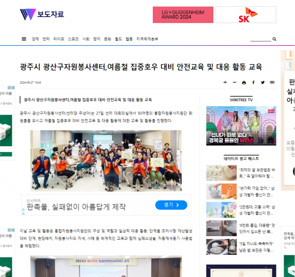 [위키트리] 광주시 광산구자원봉사센터,여름철 집중호우 대비 안전교육 및 대응 활동 교육