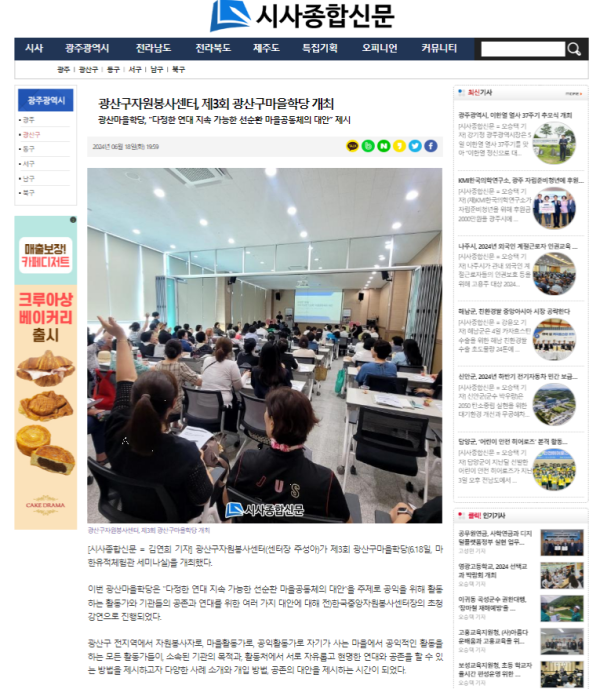 [시사종합신문] 광산마을학당, "다정한 연대 지속 가능한 선순환 마을공동체의 대안” 제시