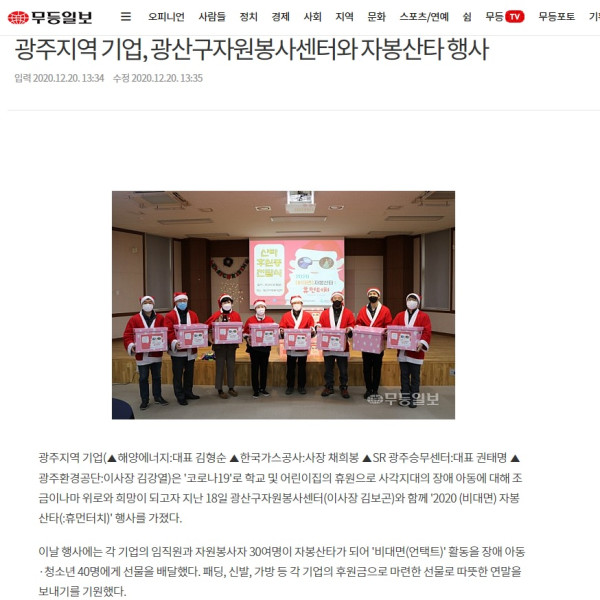 광주지역 기업, 광산구자원봉사센터와 자봉산타 행사