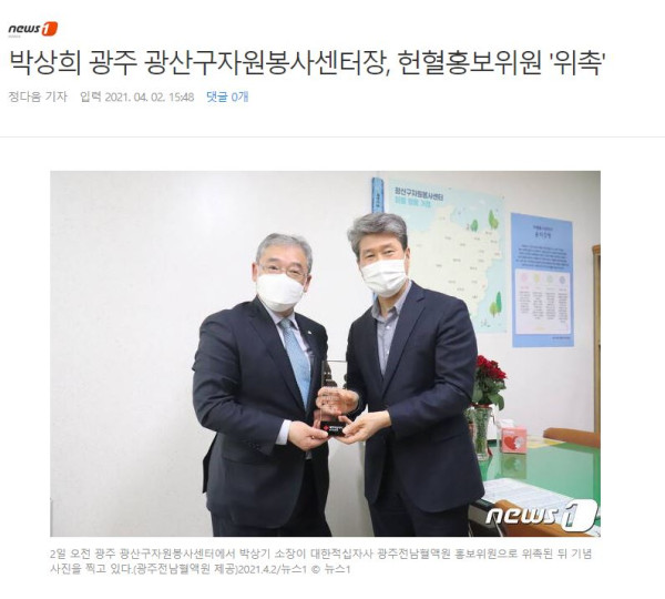 광산구자원봉사센터장, 헌혈홍보위원 위촉