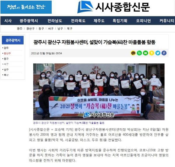 광산구 자원봉사센터, 설맞이 가슴복찬 마을돌봄 활동