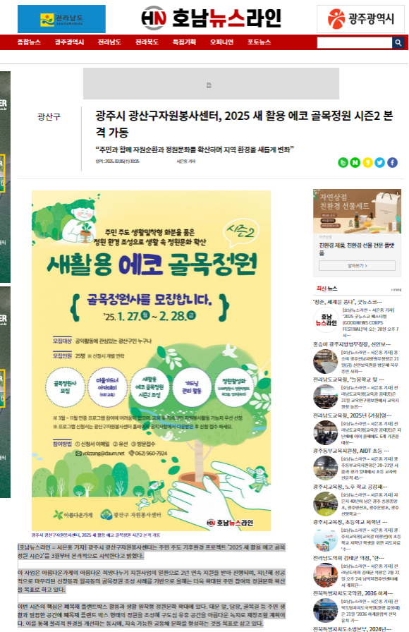 [호남뉴스라인] 광산구자원봉사센터, 2025 새 활용 에코 골목정원 시즌2 본격 가동