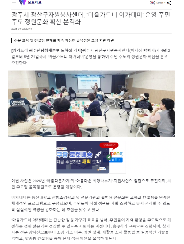 [위키트리] ‘마을가드너 아카데미’운영을 통하여 주민 주도의 정원문화 확산을 본격 추진