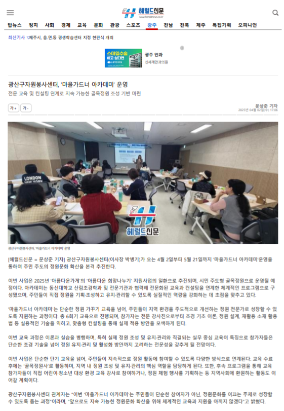 [헤럴드신문] 광산구자원봉사센터, ‘마을가드너 아카데미’ 운영