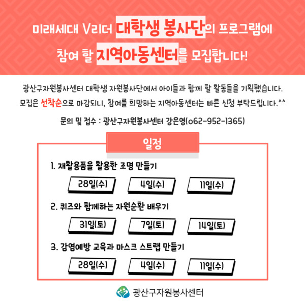 미래세대 V리더 대학생 봉사단 프로그램 참여 지역아동센터 모집