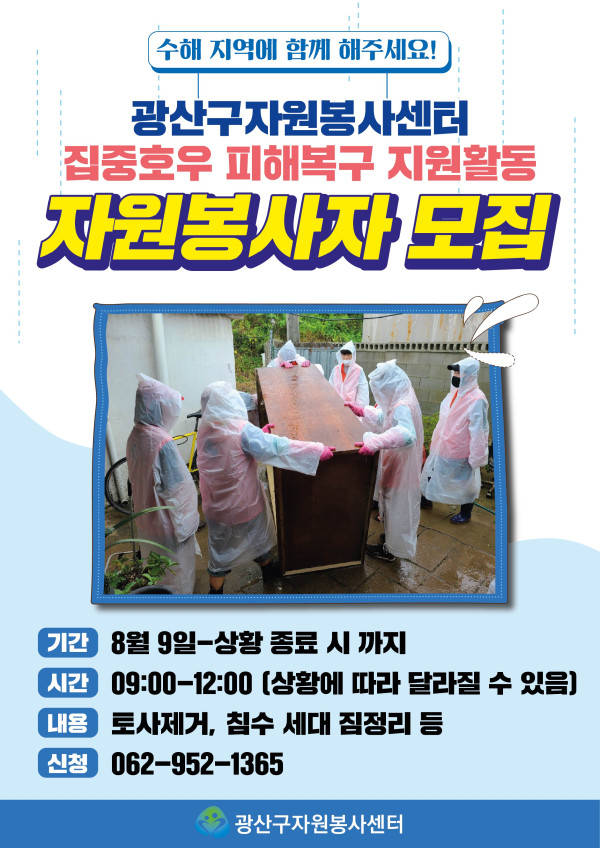 집중호우 피해복구 지원활동 자원봉사자 모집