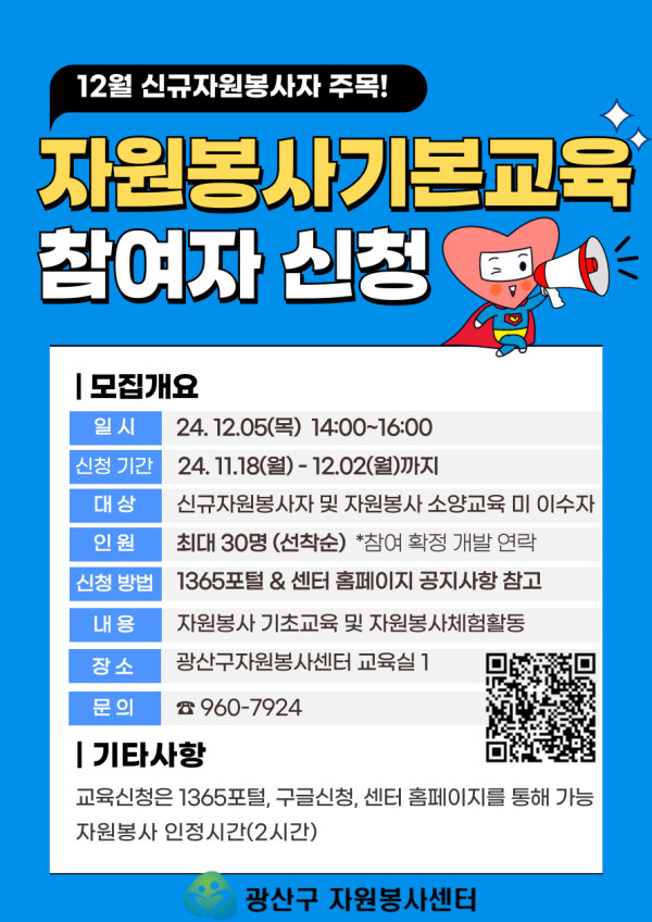 12월 신규자원봉사자 기본교육 참여자 신청 안내