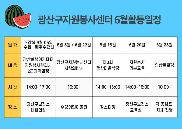 광산구자원봉사센터 6월 활동일정