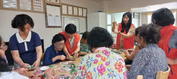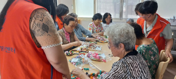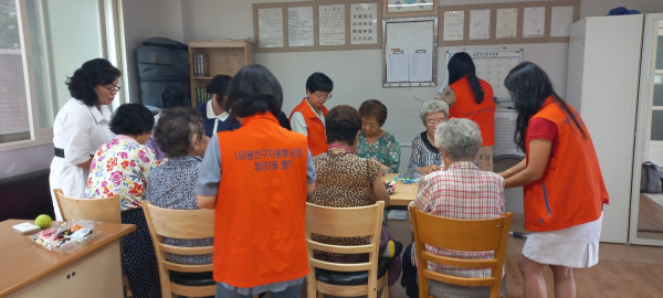 오늘 첨단2동 자원봉사캠프에서는 첨단호반2차아파트 경로당에서 마을 어르신들을 모시고