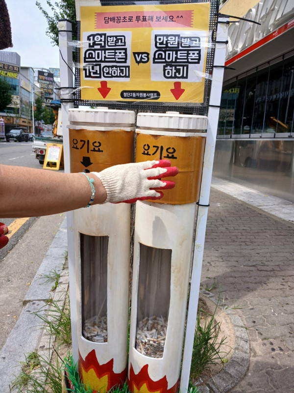 꽁초게임함이 있는 곳에서는 설치 전보다 많이 깨끗해 진 모습은 있었으나 몇 걸음 떨어진 곳에서