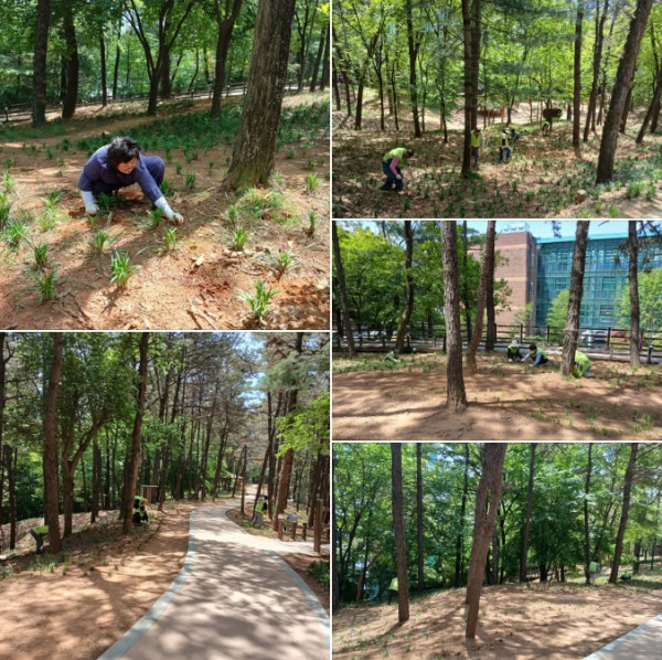 거의 2만 평에 달하는 산정공원에 맥문동을 심고, 잡초 제거까지 직접 하시는